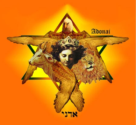 De là, vous pouvez voir comment ces créatures saintes d’Ézéchiel – le lion en tant que les yeux, le bœuf les oreilles, l’aigle le nez, et l’homme en tant que la parole, la bouche – forment la tête, symbolisée par le יYoD qui est connecté à la gorge (Daath) à travers le ו VaV (la colonne centrale de l’Arbre de Vie) et enfin l’âme (Tiphereth) jusqu’à la terre (Malkuth) au moyen du pied, le phallus formé par l’autre י YoD inférieur (Yesod). Cette terre est tout le corps physique.