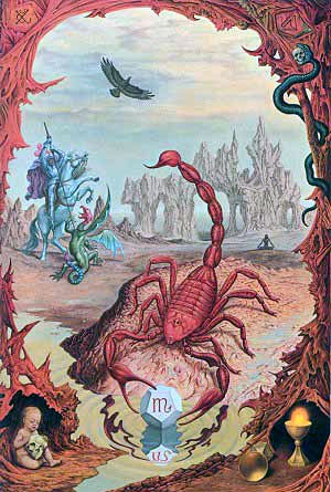 Nous sommes arrivés à l’empire tout-puissant de la force et du pouvoir. Le seul langage que nous voulons employer, maintenant, c’est le langage des Majestés, du Pouvoir supérieur. Nous ne voulons entendre parler que de la toute-puissance de la force. Le Scorpion est le royaume du terrible Pluton, l’empire omnipotent du Mage qui est maître des forces. C’est la demeure ignée du belliqueux Mars.