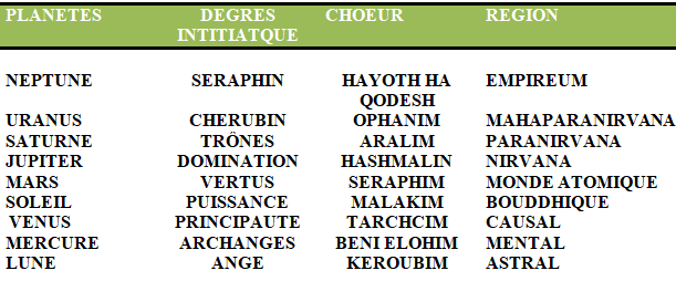 Chaque planète est liée à une dimension supérieure, qui n’est pas physique mais interne. Ce sont des mondes supérieurs ou internes, le Royaume des Cieux. Ensuite, nous avons les vertus liées au Ciel du Soleil.