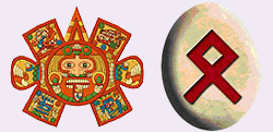 Maintenant, ces Runes Fa, Dorn et Os – comme nous l’avons souvent expliqué dans ces conférences – se rapportent au centre du Calendrier Aztèque et à la pierre entière. Très clairement, vous pouvez voir la forme de la Rune Dorn , ou cette autre qui s’appelle Othila, liée au centre du Calendrier Aztèque. Vous pouvez voir très clairement le Thorn au sommet de la tête de Tonatiuh. Oui, vous pouvez également voir clairement la forme de la Rune Othila dans le centre « X » de Tonatiuh, le visage du Calendrier Aztèque. Dans le graphique suivant, nous montrons la position de ces Runes, en relation avec notre physicalité.
