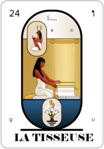 Nous aimons le tableau de 24 lettres au lieu des 18 lettres. C’est parce que le nombre 24 se rapporte au 24e Arcane, qui est l’Arcane de la Mère Divine, la Tisseuse. Elle tisse dans le métier à tisser de Dieu et, pour tisser dans le métier à tisser de Dieu, elle utilise les 24 lettres de l’alphabet Runique pour créer la Parole; la carte est le métier à tisser, l’utérus de Marie. Rappelez-vous qu’il est écrit qu’au commencement était la Parole, et que l’incarnation de la Parole est le mystère caché dans le métier à tisser ou la matrice de la Mère Divine Marie, Isis, etc. Elle a des noms différents selon les religions. C’est pourquoi, lorsque nous parlons du Futharkh, nous aimons le tableau qui traite de toutes les lettres, les 24 lettres, le 24e Arcane, la Tisseuse.